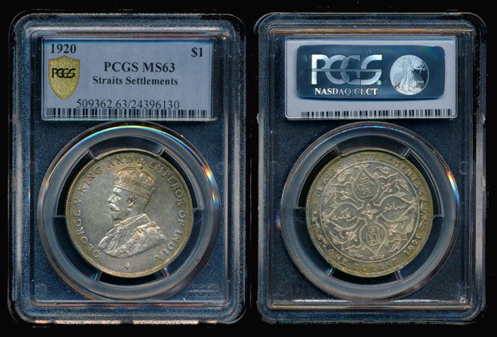 Straits Settlements Kgv $1 1920 Pcgs Ms63