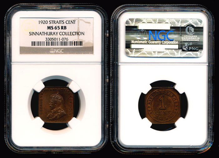 Straits Settlements KGV 1c 1920 NGC MS65RB