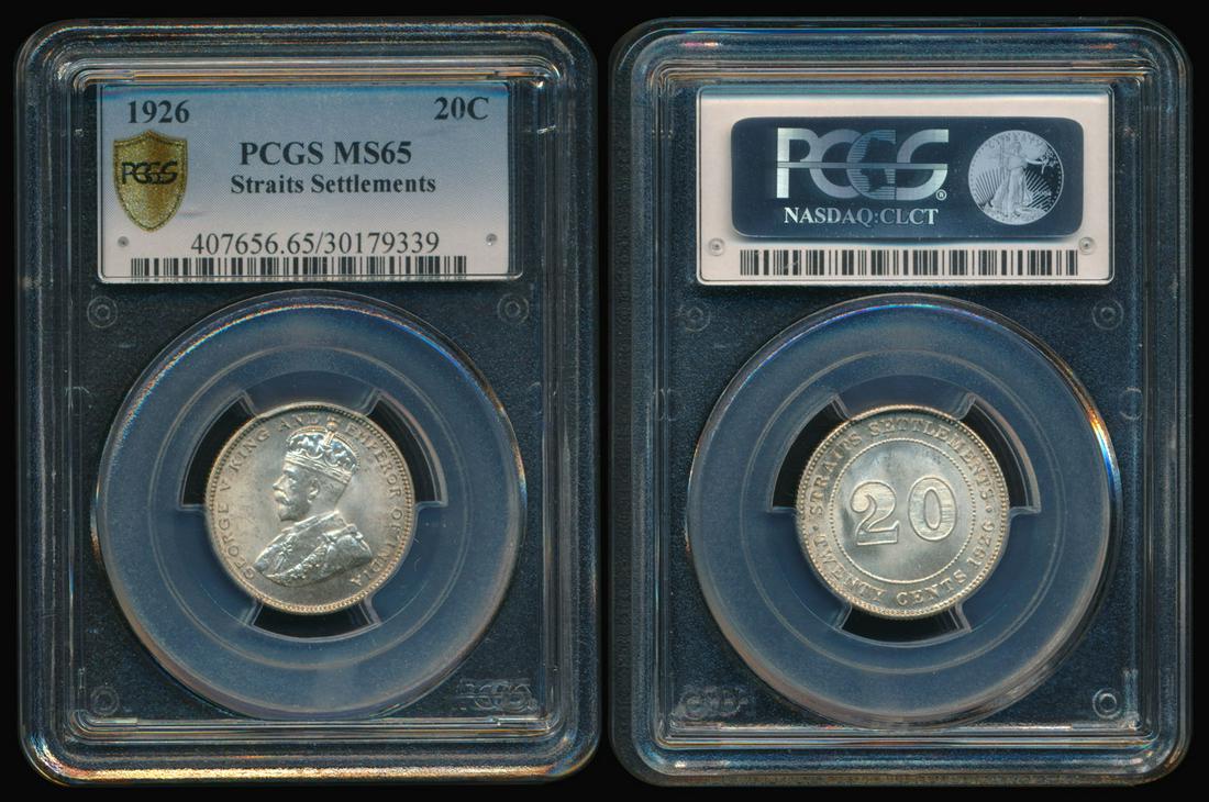 Straits Settlements KGV 20c 1926 PCGS MS65