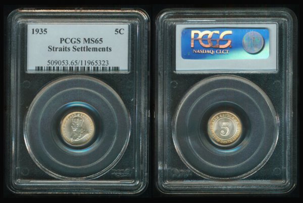 Straits Settlements Kgv 5c 1935 Pcgs Ms65
