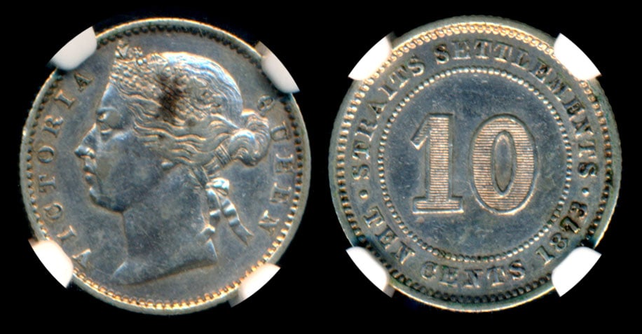 Straits Settlements QV 10c 1873 NGC