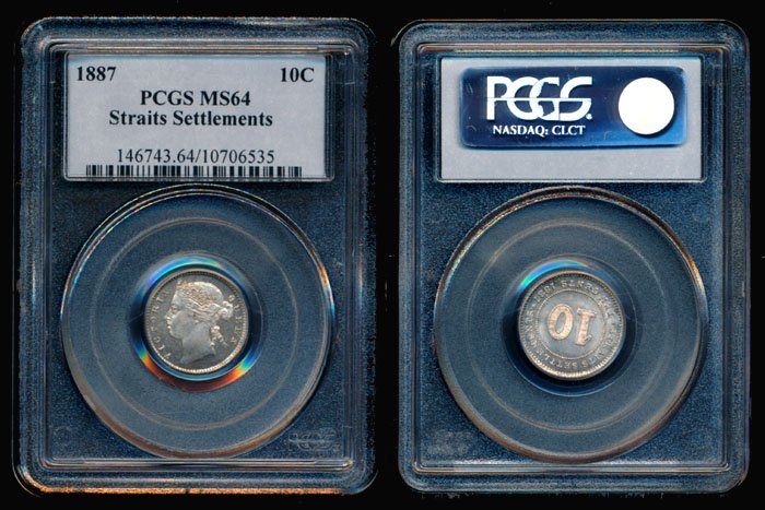 Straits Settlements Qv 10c 1887 Pcgs Ms64