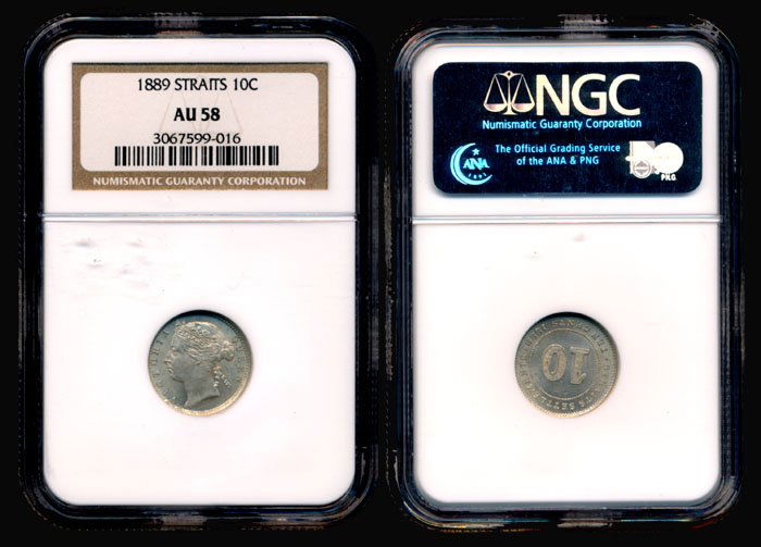Straits Settlements QV 10c 1889 NGC AU58