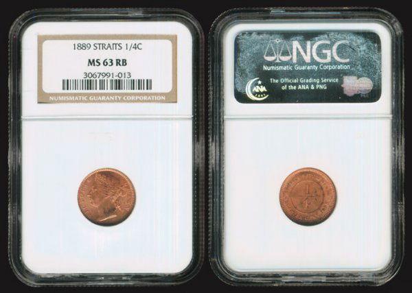Straits Settlements QV 1/4C 1889 NGC MS63RB