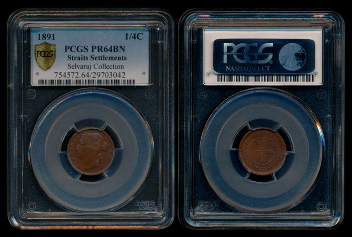 Straits Settlements QV 1/4c 1891 proof PCGS