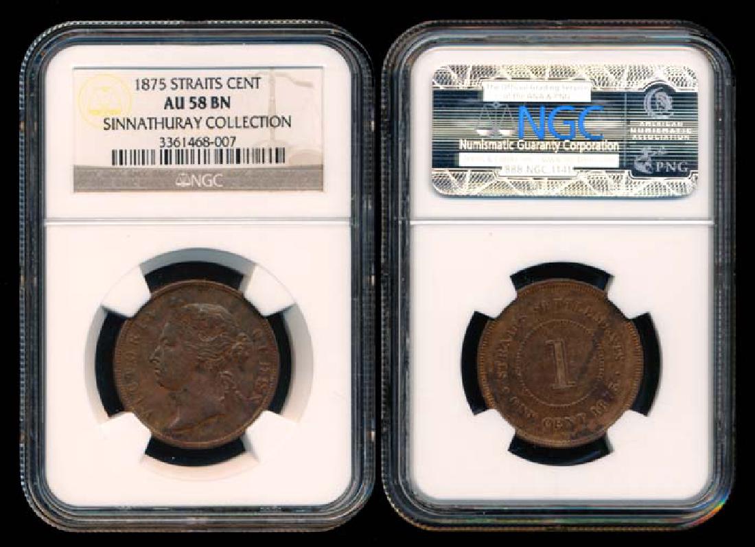 Straits Settlements QV 1c 1875 NGC AU58BN