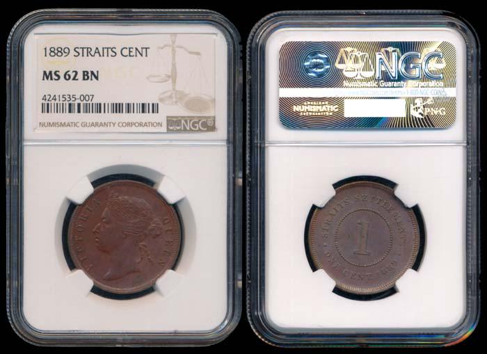 Straits Settlements QV 1c 1889 NGC MS62BN