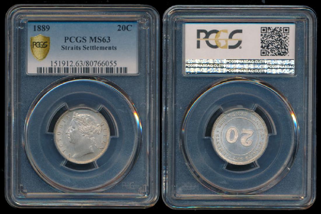 Straits Settlements QV 20c 1889 PCGS MS63