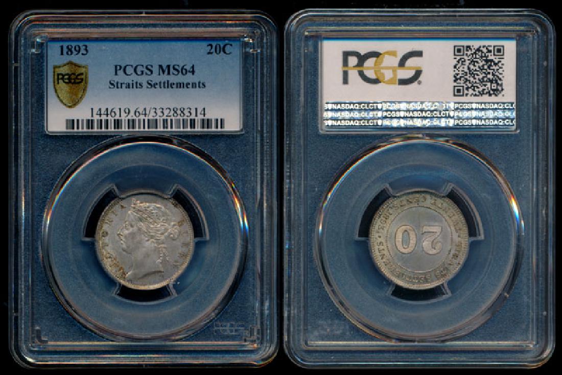 Straits Settlements Qv 20c 1893 Pcgs Ms64