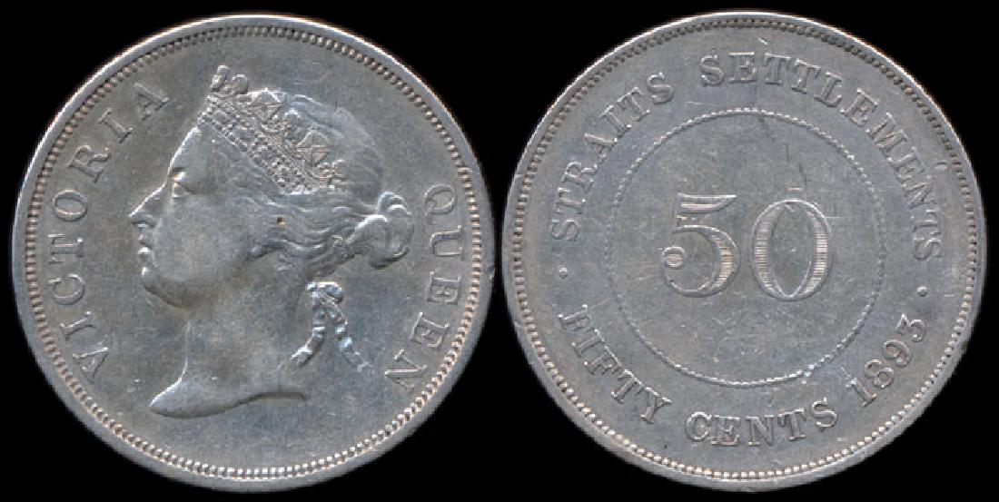 Straits Settlements QV 50c 1893 GVF-EF