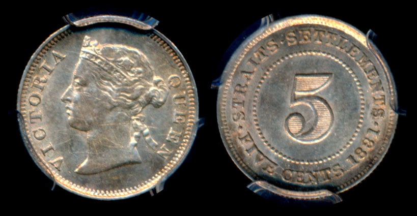 Straits Settlements QV 5c 1881 PCGS