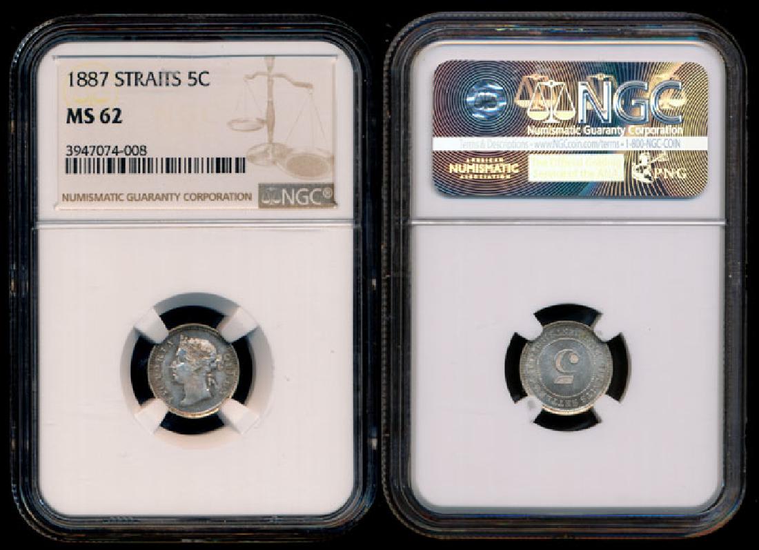 Straits Settlements Qv 5c 1887 Ngc Ms62