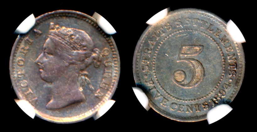 Straits Settlements QV 5c 1894 NGC