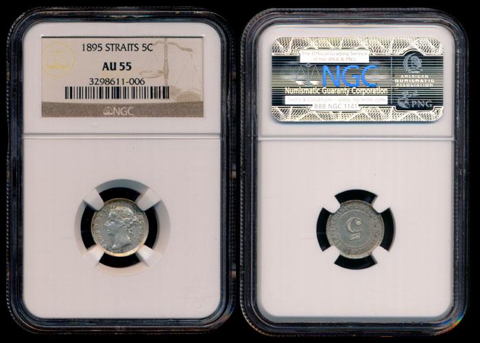 Straits Settlements QV 5c 1895 NGC AU55
