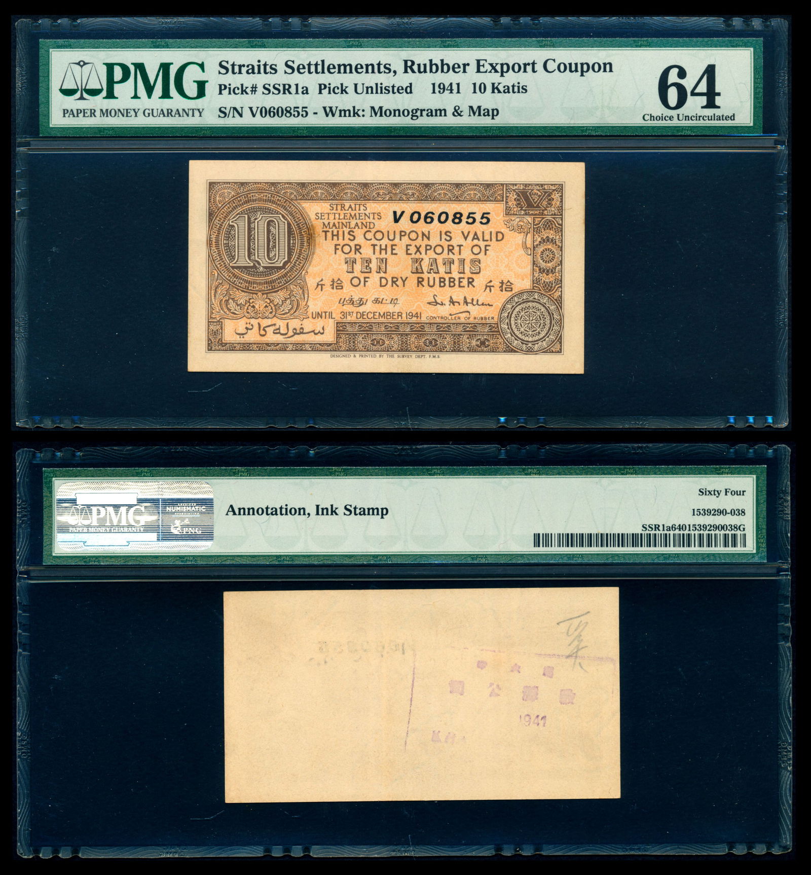 Straits Settlemts Rubber Coupon 10Katis 1941