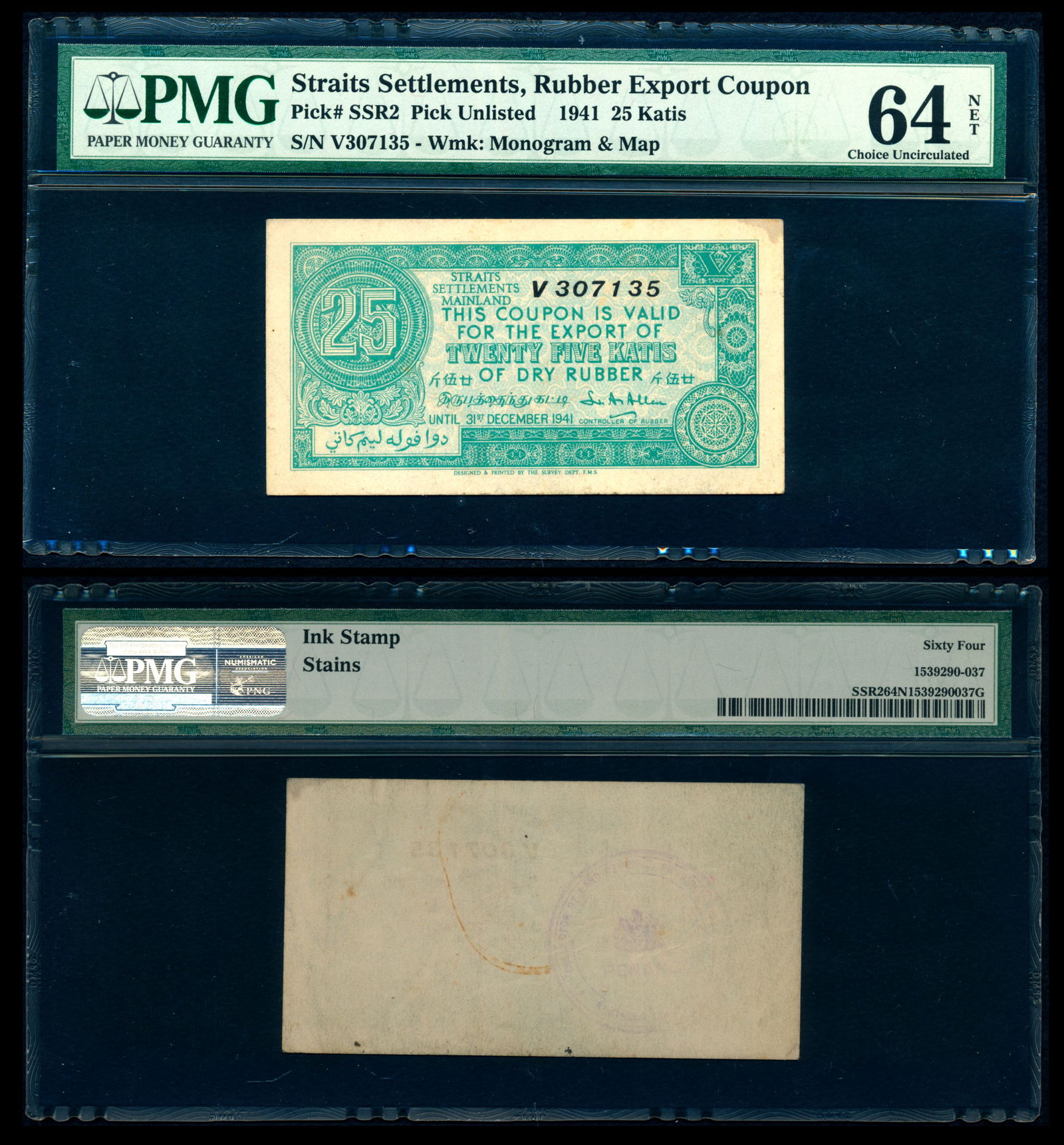 Straits Settlemts Rubber Coupon 25Katis 1941