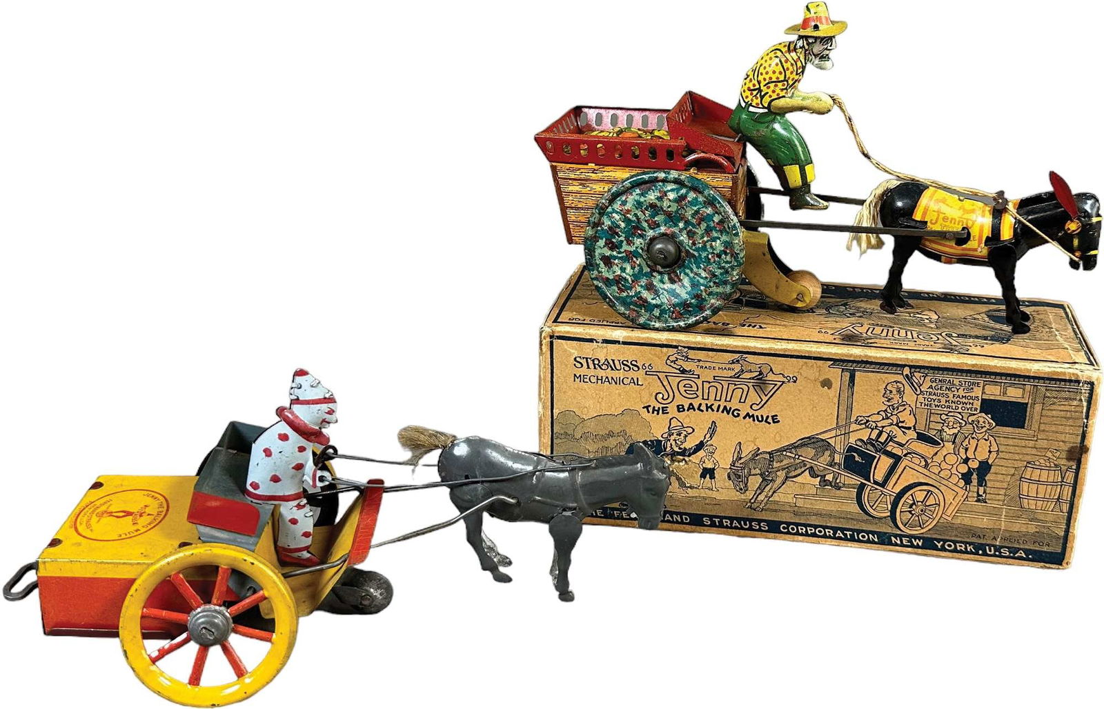 (2) CAST IRON HORSE-DRAWN TOYS, FIRE HOSE WAGON & HARNESSED HORSES3 days LeftModel of 2-horse hitch with 3-seat dog cartMar 27, 2026Model of 2 draft horses hitched to wagonMar 27, 2026Model of 2 draft horses hitched to hay wagonMar 27, 2026Jenny The Balking Mule Lithographed Wind Up ToyMar 07, 2026Cast Iron Sulky Cart, Horse, and Driver. Appears to be original paint, unusual spring mechanism, 12"7 days LeftTwo Horse Stake Body WagonMar 07, 2026LINEOL HORSE DRAWN TINPLATEFeb 27, 2026Dent cast iron fire hose reel carriageMar 27, 2026Oversized Two Horse Fire PumperMar 07, 2026Transitional Deluxe Two Horse Hose ReelMar 07, 2026Horse Drawn Fancy GigMar 07, 2026Overland Circus Menagerie WagonMar 07, 2026BOXED STRAUSS & MARX BALKING MULESFeb 27, 2026LEHMANN CLIMBING MONKEY W/ BALKING MULEFeb 27, 2026Two Horse Fire Pumper - Rubber TiresMar 07, 2026