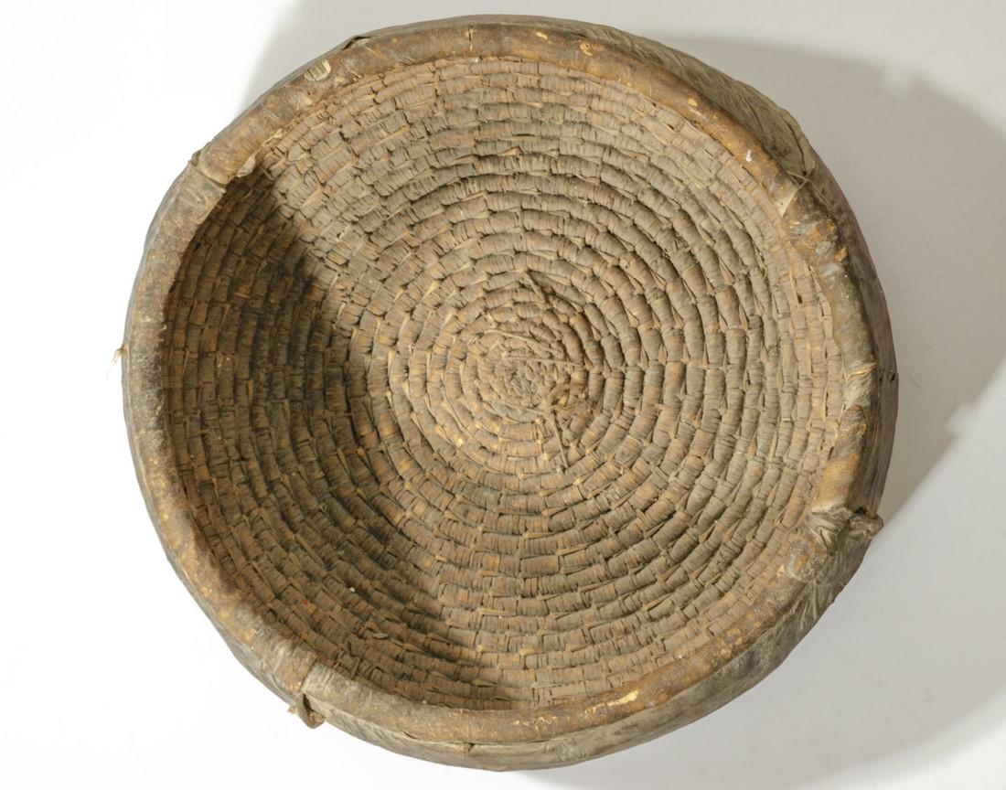 Cowrie Shell and Leather Tri-Color Footed Basket