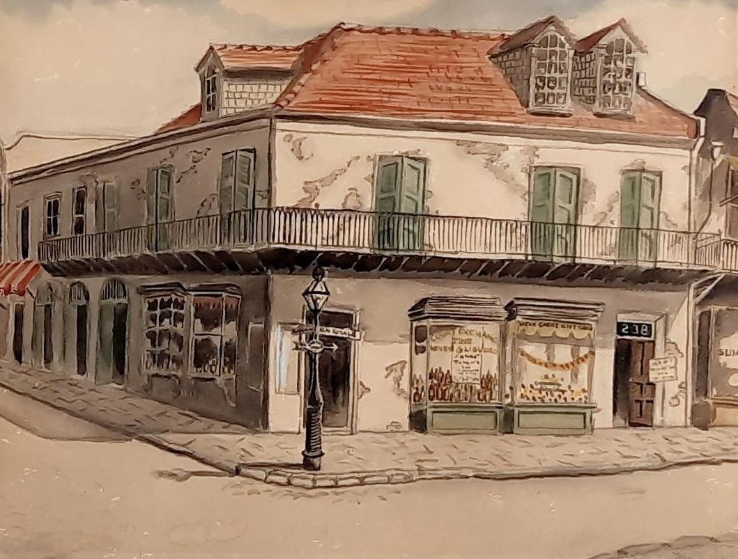 Street Corner Scene Watercolor