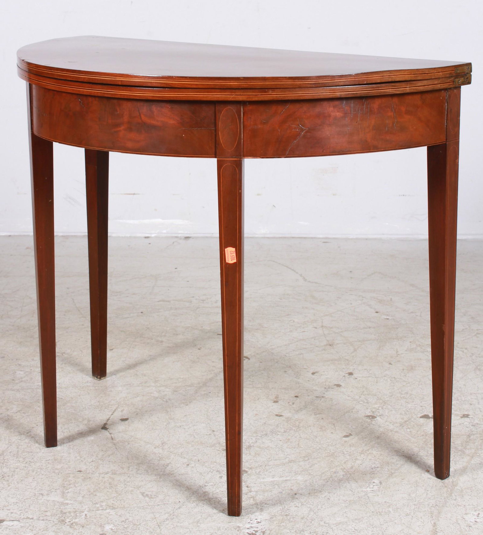 String inlaid Hepplewhite demilune card table