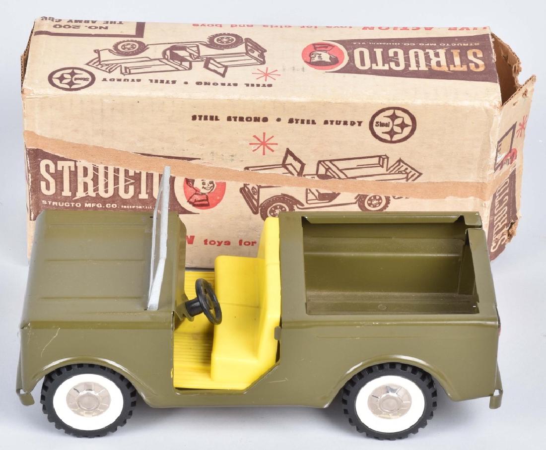 SoldStructo No. 906 Army Transport Truck w/ BoxOriginal Structo No. 906 army transport truck with original box. The truck appears to be hardly ever played with and is in excellent condition. We didn't want to install the canvas top in risk of scraSee Sold Price