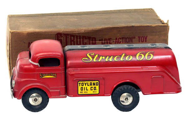 SoldSTRUCTO WINDUP GASOLINE TRUCK w/ BOX#866 Structo Gasoline Truck. All original in great shape. Windup works. Boxed 13 1/2" ExcellentSee Sold Price