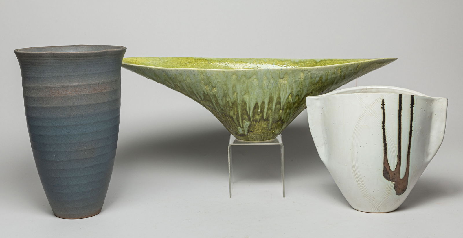 A various lot of four vintage variously shaped ceramic vasesFeb 24, 2026Eclectic Ceramics Lot of 320 hrs LeftA Trio of Vintage American Art Pottery Planters, Including McCoy5 days LeftSven Hofverberg (1923-1998) Swedish ceramist. Two unique glazed ceramic bowls. Beautiful metallicHandmade Pottery Glazed Bowl and Small Vase3 days Left3 large modern pottery vases, light glaze and wickerwork.Small (4) Pottery and Wood VesselsFeb 25, 2026Two Studio Art Hand Thrown Stone Wares6 days LeftFour Studio Pottery VesselsFeb 22, 20262 PIECES MODERN ART POTTERY ONE SIGNEDMar 05, 2026Group of Miniature Pottery Vases7 days Left(4) Large Frankoma Vases 9.25-12.5 inches TallFeb 25, 2026FOUR MURRINE GLASS VASES, LOPEZ & PATTERSON5 days LeftJugtown Pottery (Seagrove, NC), Three Chinese Blue Pottery Vessels5 days Left3 PC. NILOAK SWIRL ART POTTERY VASESFeb 22, 2026North Carolina Pottery Group7 days Left