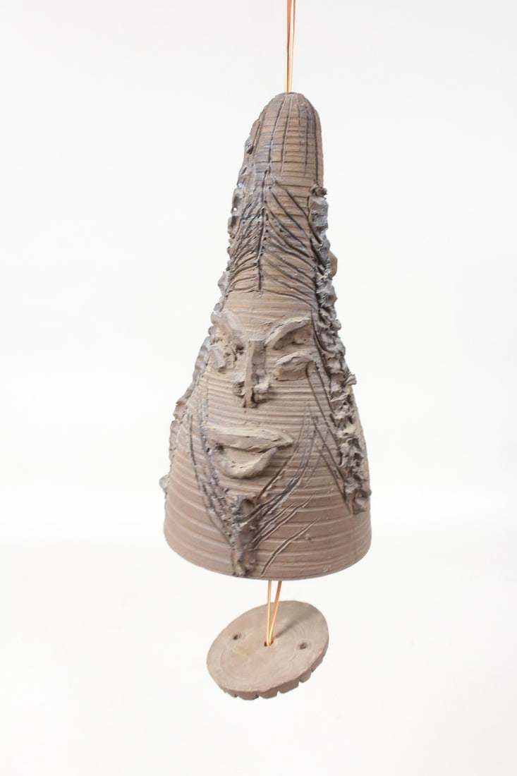 Studio Pottery Brutalist Face Ceramic Wind Chime Bell