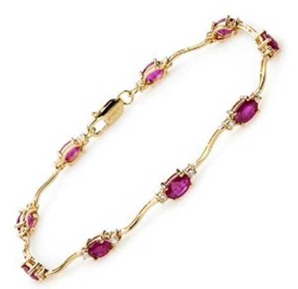 Sold14K Gold Ruby & Diamond Bracelet14K gold diamond and ruby bracelet over 3 carats. In an alternating pattern of gemstones. It measures approx 7" L and weighs approx 9.2 dwt. See photos.See Sold Price