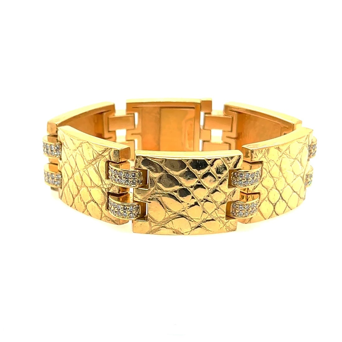 Vintage 1 Carat 18k Gold Wide Bracelet with Diamond Accents