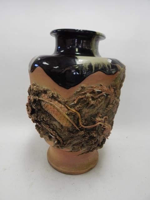 SoldA Sumida Gawa vase, Japan, flambé glazed, polychromeA Sumida Gawa vase, Japan, flambé glazed, polychrome and relief decorated with figures, H 24 cmSee Sold Price