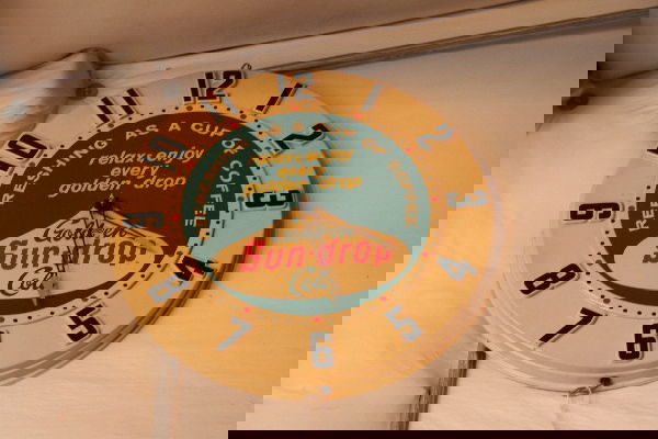 Borden's Milk & Cream lighted bubble clockMar 27, 2026Chevrolet Time neon clock by LacknerMar 28, 2026A&P Coffee electric wall-mount clockMar 28, 2026Neon electric clock by Say-It-In NeonMar 28, 2026Pepsi Cola Light Up Clock With Bottle CapMar 20, 2026Golden Leaf Flour neon clockMar 28, 2026Drink Sun Crest Beverages Electric Clock 16"Mar 14, 2026Sun Drop Golden Girl Cola Porcelain Advertising Door PushMar 14, 2026Cleveland Neon Clock With Drive In MarqueeMar 20, 2026Drink Coca Cola 15.5" PAM Advertising Clock w/ Fishtail LogoMar 21, 2026Drink Coca Cola 15.5" PAM Advertising Clock w/ Fishtail LogoMar 21, 2026INGRAHAM "DROP OCTAGON" COCA-COLA ADVERTISING WALL CLOCKMar 05, 2026Sessions Clock Co. Oak Regulator Wall ClockMar 08, 2026Pepsi Cola double bubble lighted clockMar 28, 2026Sun Drop Porcelain Door PushMar 14, 2026Sun Drop Golden Girl Cola Advertising Thermometer 27"Mar 14, 2026