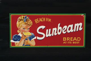 Sunbeam Bread signMar 27, 2026Sunbeam Bread signMar 27, 2026Stroehmanns Sunbeam Bread signMar 27, 20261940s-1950s "Reach For Sunbeam Bread" Tin Advertising SignMar 14, 2026Reach For Sunbeam Energy Packed Bread Single Sided Tin SignMar 21, 2026"Reach for Sunbeam Bread" Electric Advertising Display SignMar 14, 2026Sunbeam Bread thermometerMar 28, 2026Butter-Nut Bread signMar 28, 2026Sunbeam It's Batter Whipped Light Up SignMar 20, 2026HOLSUM BREAD SIGN2 days LeftMORTONS BUSTER BROWN BREAD SIGN2 days LeftReach For Jaeger's Butter-Nut Bread signMar 28, 2026Sun-Maid Raisins Grocers signMar 28, 2026New Lion Regular gasoline signMar 28, 2026Pepsi=Cola 5-cent signMar 28, 2026Sunbeam Bread Porcelain Door PushMar 14, 2026