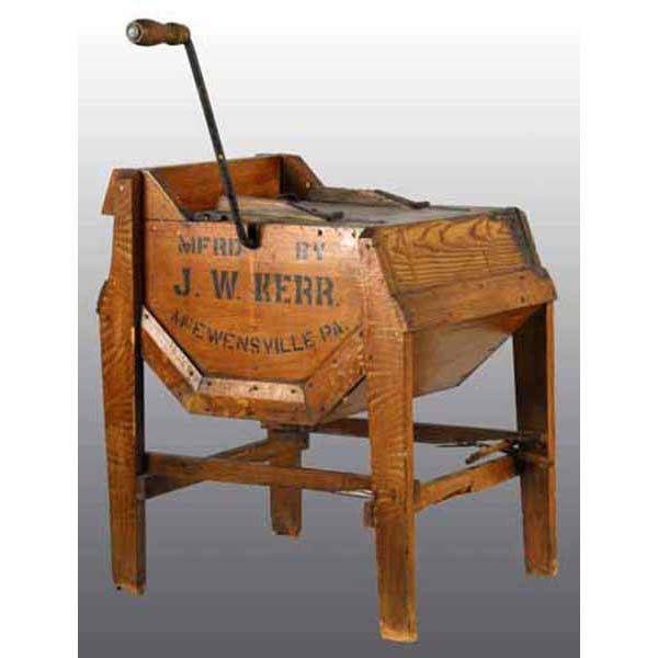 Original Patent Model Washing MachineOriginal Patent Model Washing Machine - Salesman Sample Size - 12" X 12" - Galvanized Barrel Shaped Two-Cylinder Body with Wire Mesh Screen Interior - Dark Oak Frame - Includes Original Patent ApplicaSee Sold Price
