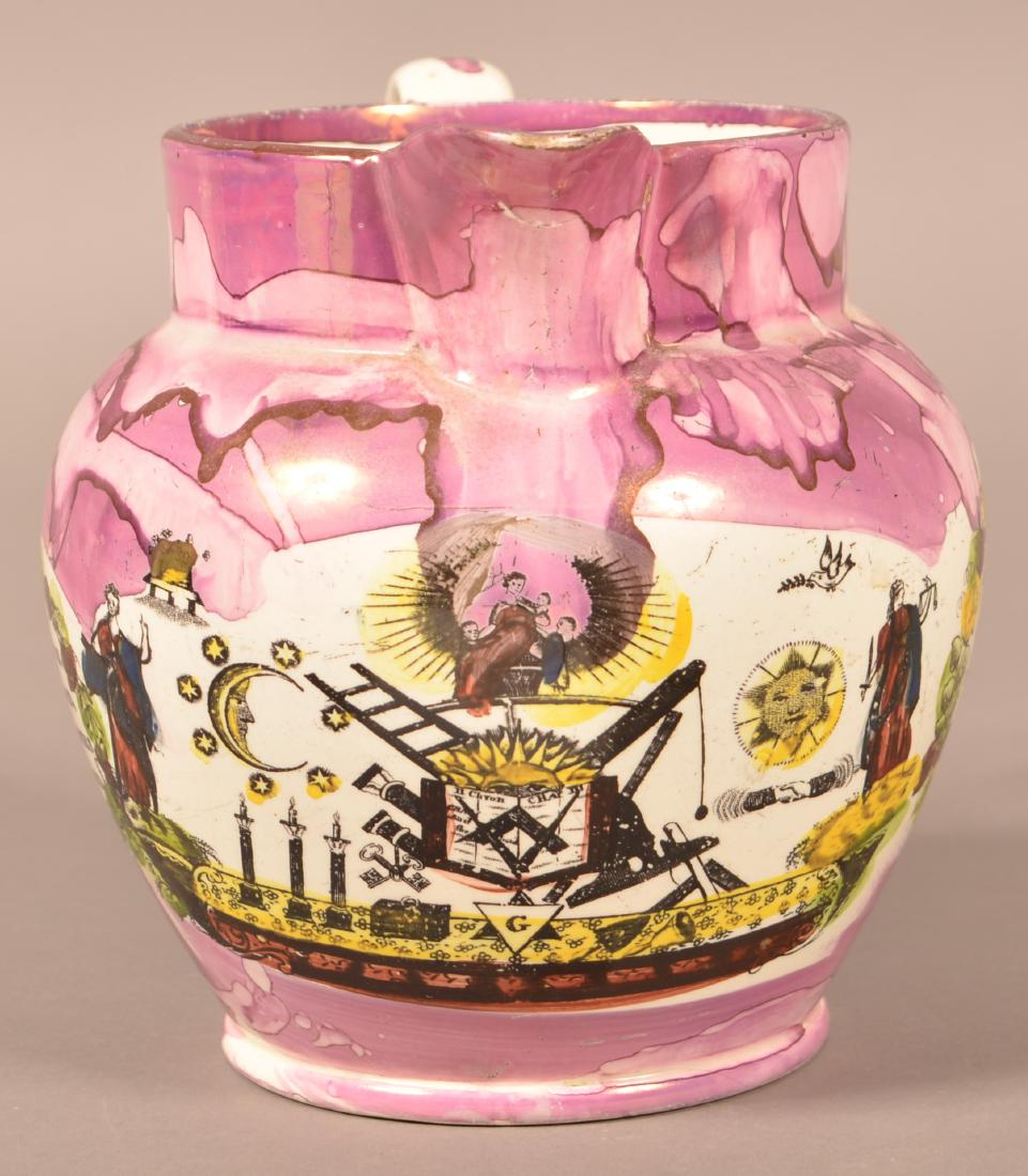 Sunderland Lustre Masonic Transfer Pitcher.