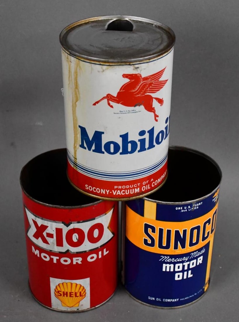 Sunoco, Mobil & Shell Motor Oil Quart Cans