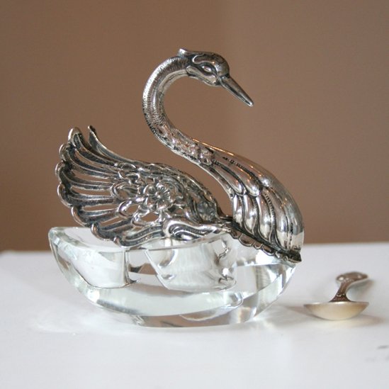 Superb Cellar Salt Swan Shape Crystal and Silver