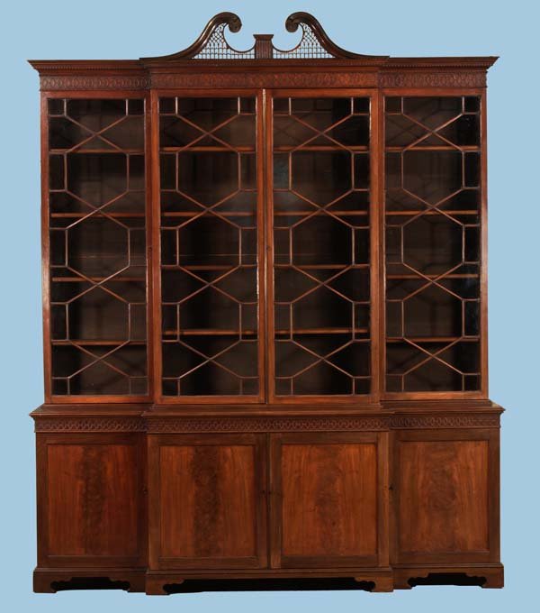 Superb Chippendale mahogany breakfront bookcase wi