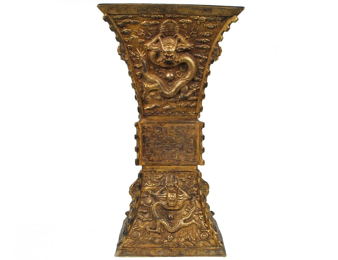 A copper-gilt dragon pattern vase from the Qing Dynasty