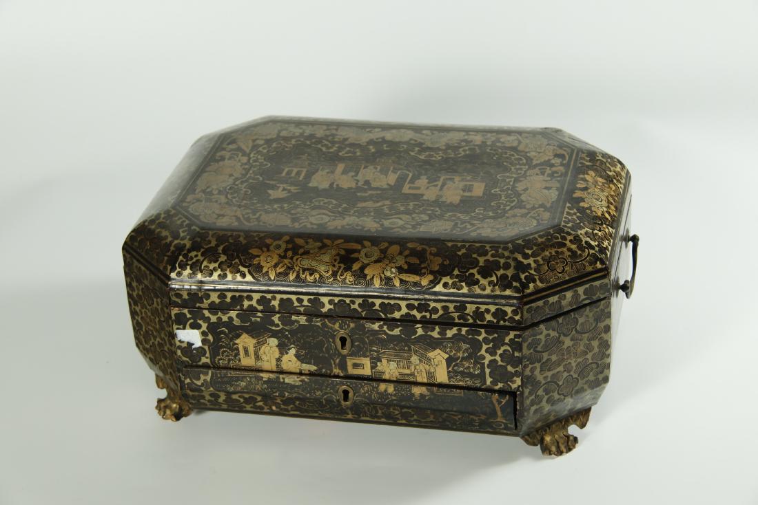 Superb gold painted lacquer sewing box, 19th C.