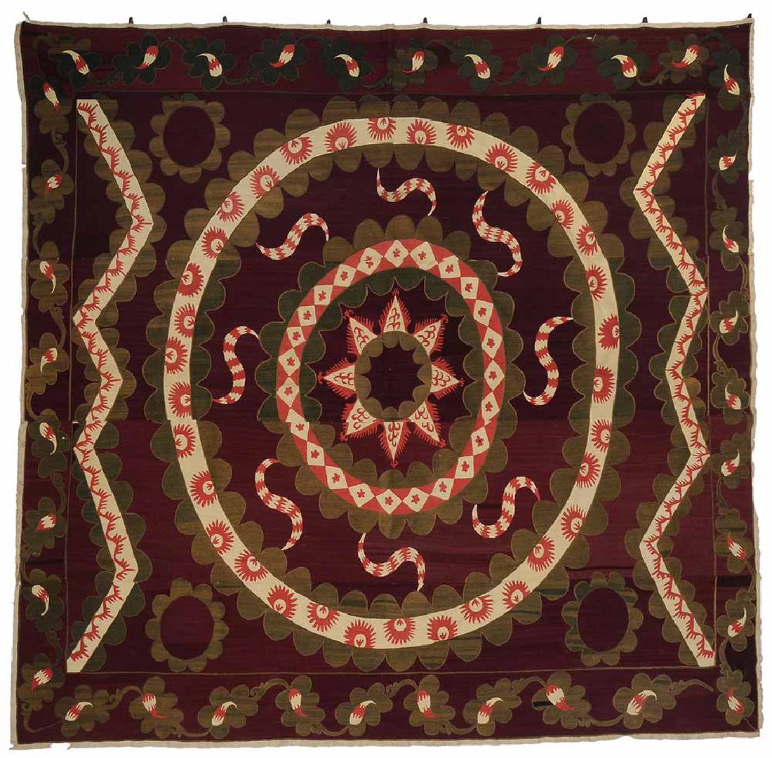 A SUZANI, TASHKENT,UZBEKISTAN,19TH CENTURY247 Lots AwayAn embroidered wool panel (suzani) Central Asia, second half of 20th CenturyDeep Raspberry Red Hand-Embroidered Suzani ThrowEarly 20th Century Kirman Suzani TextileA SUZANI, BUKHARA, UZBEKISTAN,19TH CENTURY254 Lots AwayVintage Boho Suzani Runner TextileA Bukhara silk embroidered linen panel (nim suzani) Uzbekistan, 19th CenturyStone Medallion Hand-Embroidered Suzani ThrowA silk embroidered linen panel Caucasus, probably Azerbaijan, late 18th Century1970's Ruby Red Mandala Suzani TapestryAMERICAN FOLKSY COTTON APPLIQUE QUILT.4 days LeftAn antique suzani textile5 days LeftAMERICAN COTTON APPLIQUE FLORAL QUILT.4 days LeftHand-Woven Wool Needlepoint Flatweave Abusson RugFeb 23, 2026Suzani Tapestry - Faded Uzbek Table Cloth - Tribal Embroidery Wall Decor 4'5'' X 4'6''AMERICAN CRAZY QUILT.4 days Left