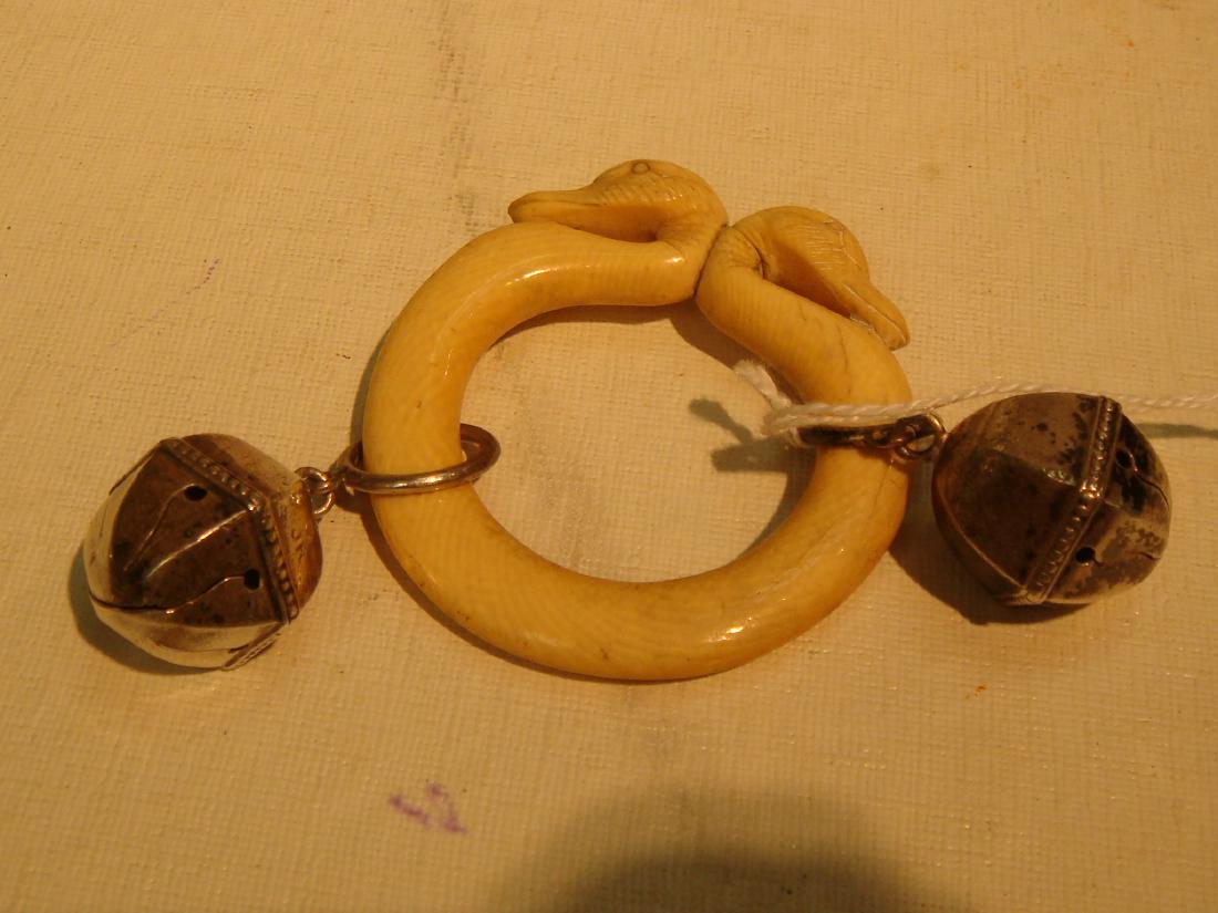 Swan Head Teething Ring/Rattle with Sterling Bells: