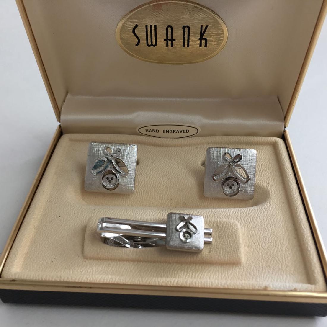 SWANK: Silver tone hand engraved textured SET -