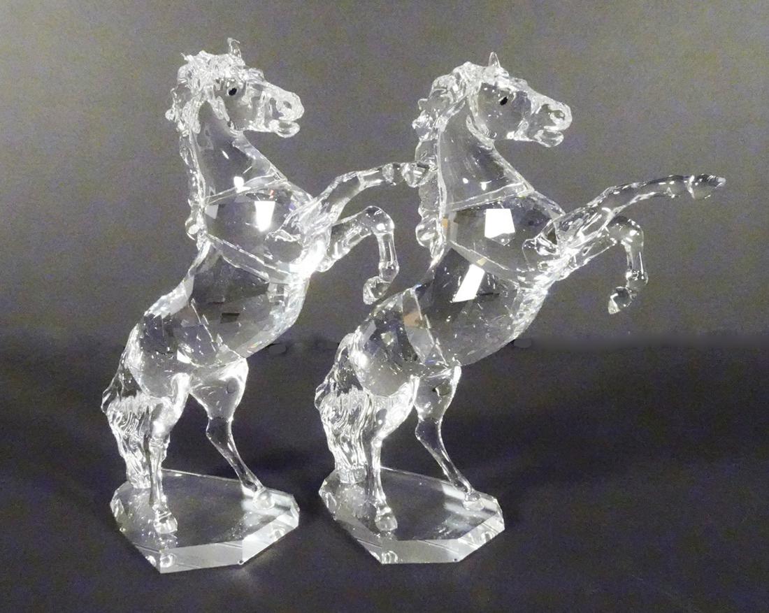 SoldSwarovski Austrian Crystal StallionsPair of Swarovski Austrian crystal Rearing White Stallion Horse figures, from the Horses on Parade collection, designed by Martin Zendron, circa 1993-2005, both are signed with the Swarovski swan logoSee Sold Price
