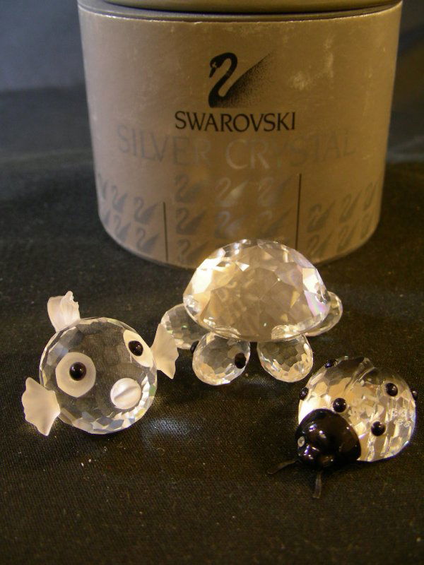 SWAROVSKI CRYSTAL FIGURES FISH TURTLE BUG 3 PCS