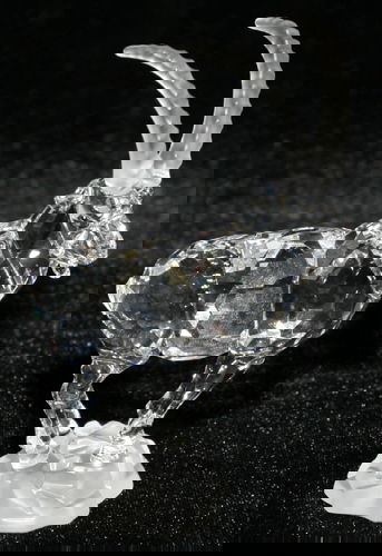 SoldSwarovski Crystal Ibex FigurineDESCRIPTION: A Swarovski crystal figurine of an ibex standing atop a frosted crystal boulder. Composed of an overall faceted crystal foundation and finished with frosted crystal horns. CIRCA: Late 20tSee Sold Price
