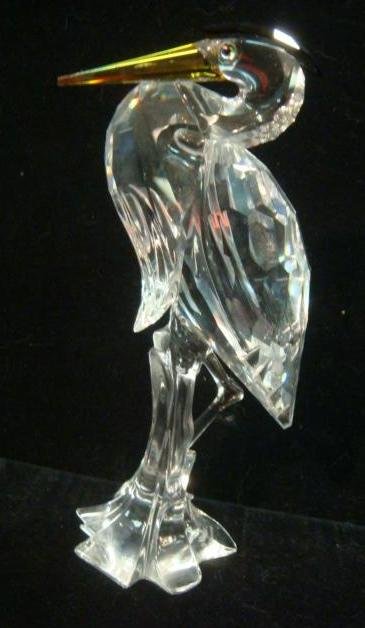 SoldHeron - Swarovski Silver Crystal FigurinePart of the 'Feathered Friends' theme group. A clear crystal long legged bird with an amber beak and black feathers on the top of its head. Swarovski laser etched marking on the base. This item has itSee Sold Price