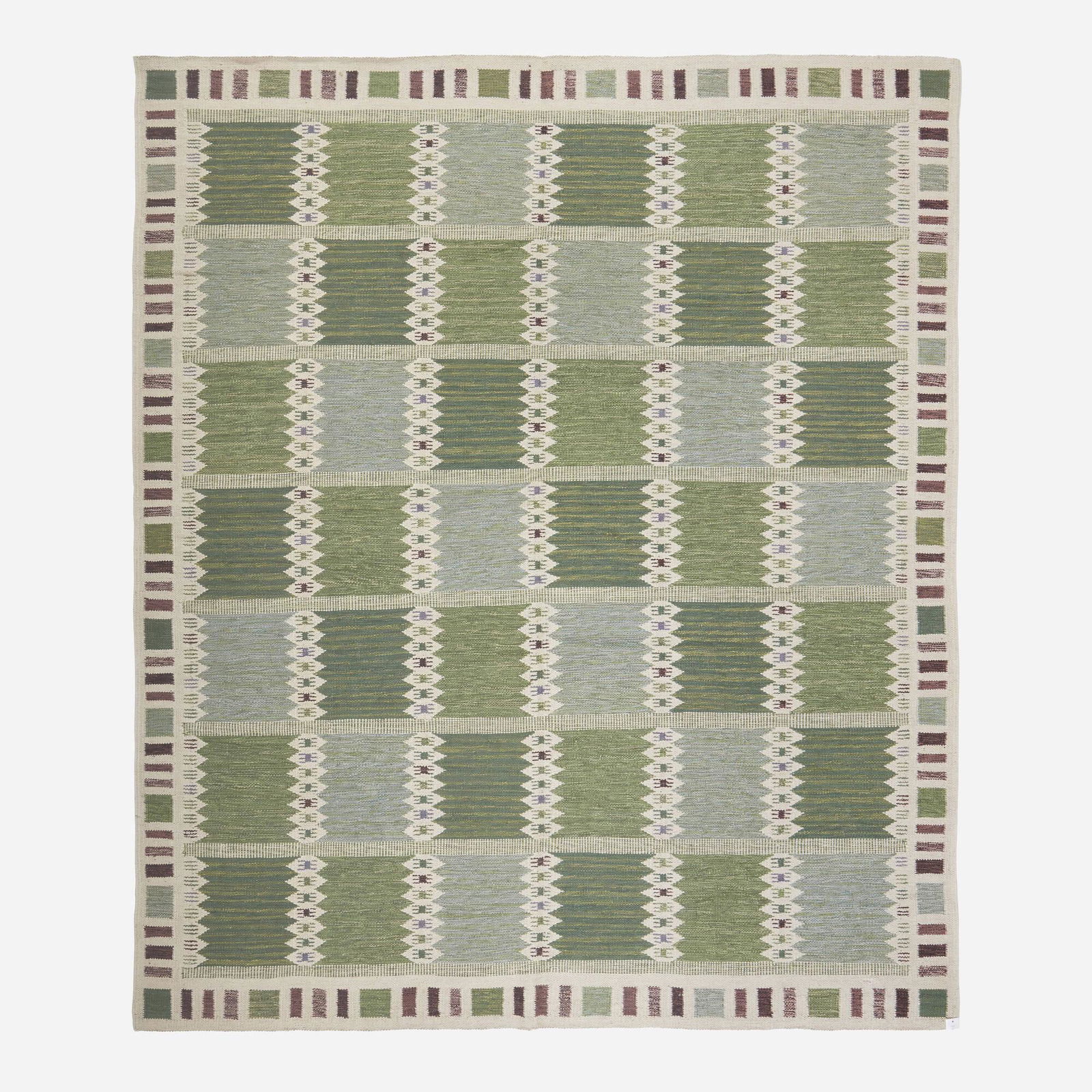 SoldSwedish Flatweave Carpet by Ingegerd SilowSwedish Flatweave Carpet by Ingegerd Silow Woven with the initials 'IS'.  9 ft. 11 in. x 6 ft. 5 1/2 in.See Sold Price