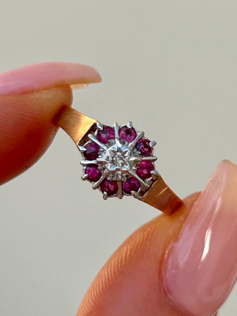 Sweet 9ct Gold Ruby and Diamond Flower Ring
