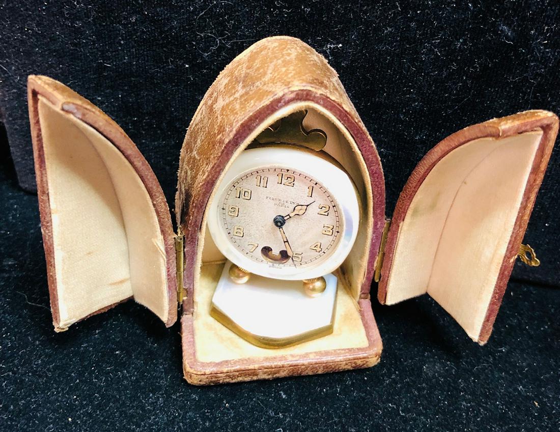 A Tiffany & Co. Swiss Brass Mounted Mahogany Cased Desk Timepiece